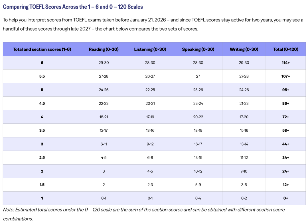 由 120 分制改为 6 分制,0.5 分递增,方便对标 CEFR 级别。2026 年 1 月 21 日起的 2 年过渡期内,正式成绩单将同时显示 6 分、120 分和 CEFR 分级,潍坊天润国际英语学校会为学员提供专属分数换算与目标规划服务。